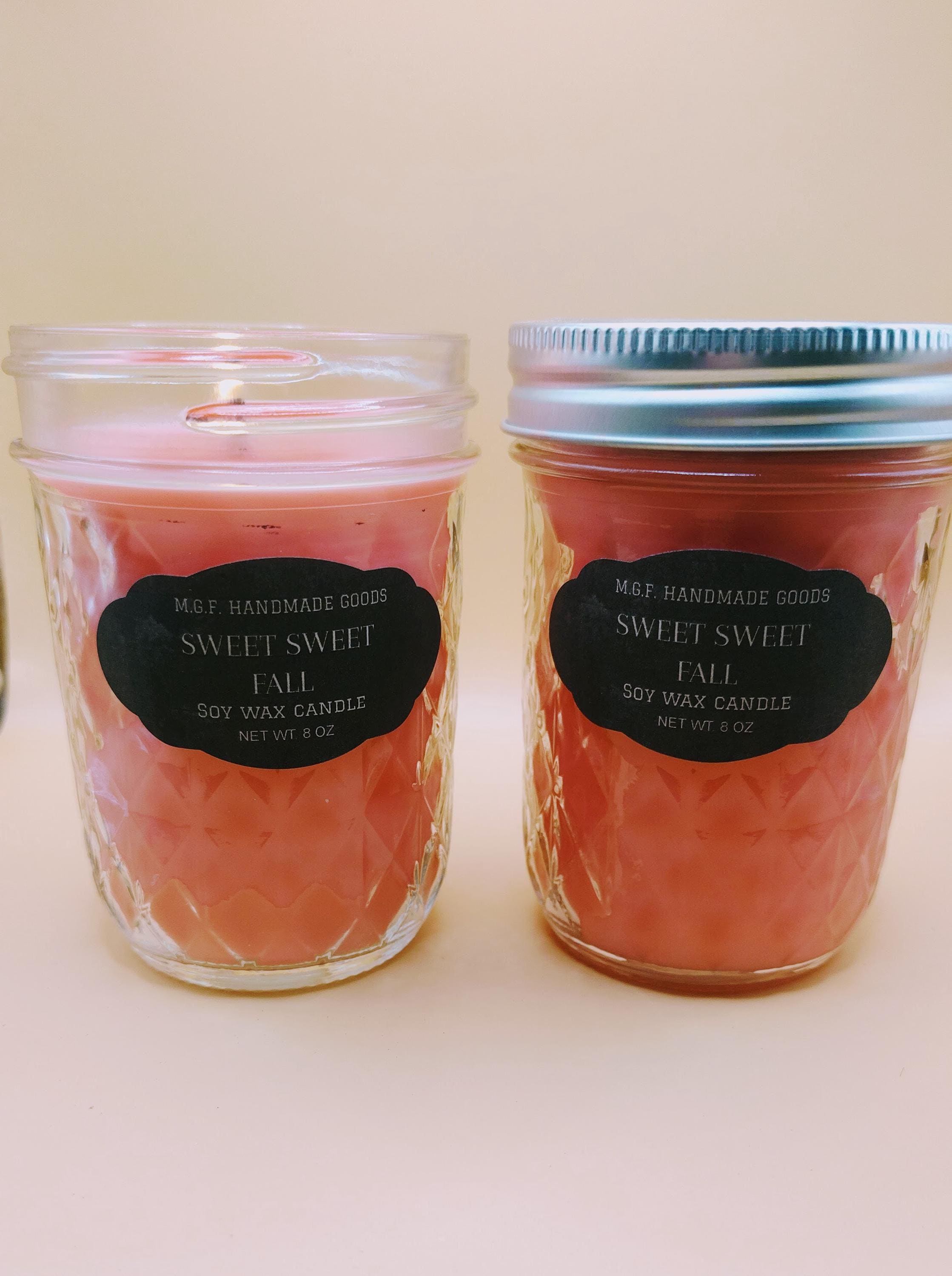 Bring the magic of autumn into your home with our Sweet Sweet Fall candle. Hand-poured with care, this cozy blend captures everything you love about the season—crisp air, golden leaves, and comforting sweetness. Notes of warm spices and a hint of sugary delight wrap your space in the essence of fall, making it perfect for cozy nights, festive gatherings, or simply unwinding with your favorite book.