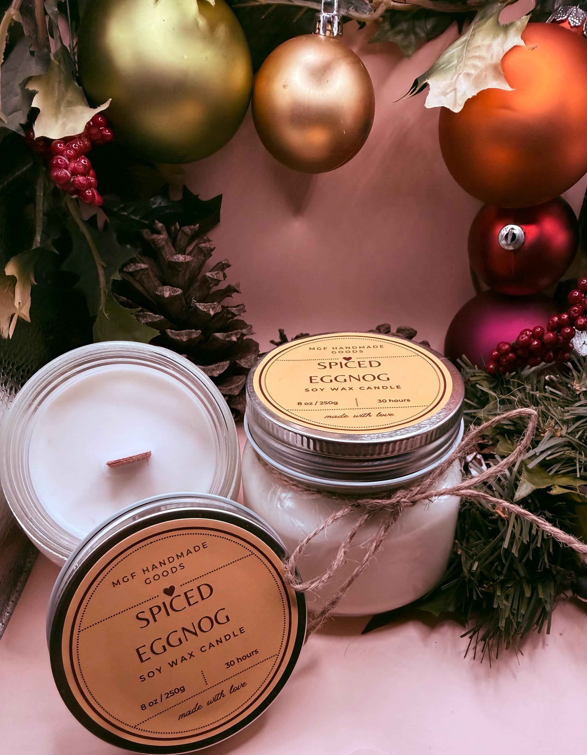 Wrap yourself in the warmth of the season. Our Spiced Eggnog candle blends creamy vanilla and sweet cream with a swirl of nutmeg, cinnamon, and a touch of dark rum. The fragrance is rich and comforting—like your favorite holiday treat by a crackling fire.
